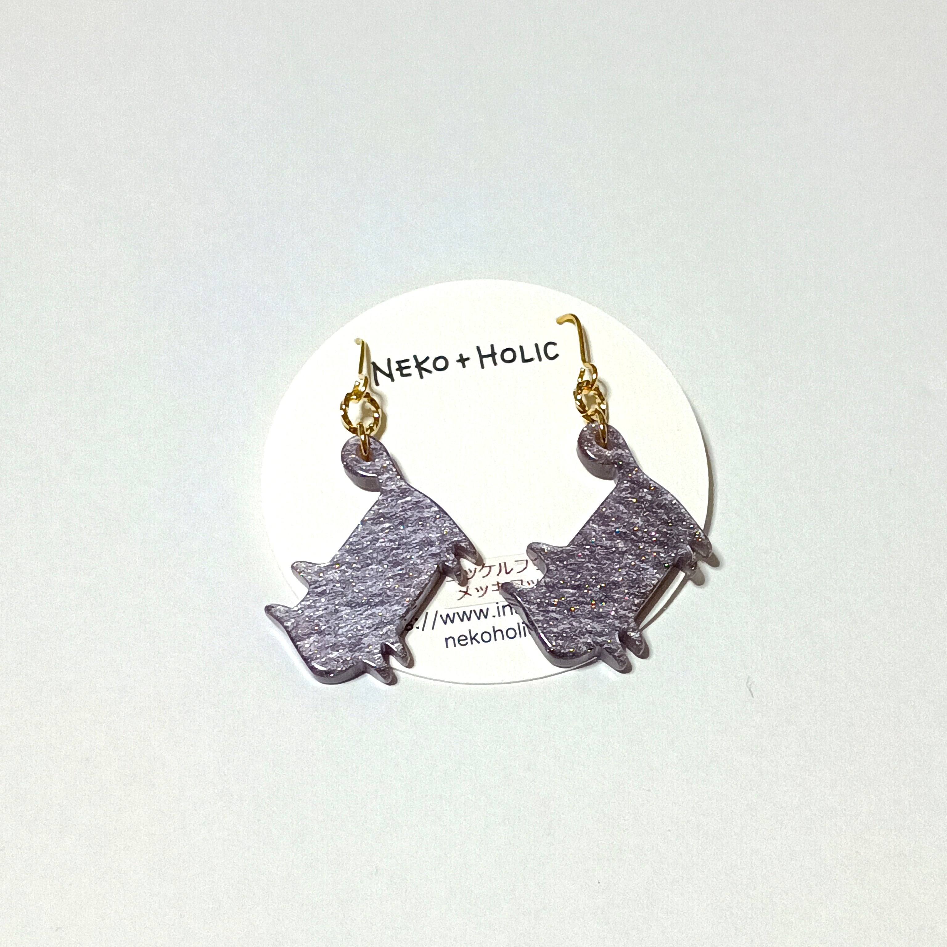 NEKO+HOLIC にゃんこりっく 両耳にゃんこピアス シルバー&ゴールドラメ 【スポット1点限り】